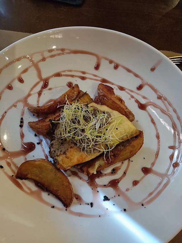 - Timbal de carrillada y foié con manzana estofada y reducción de vino tinto