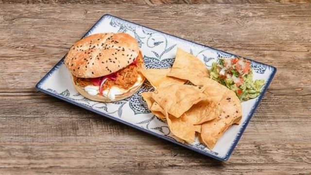 - Pan de mollete con pollo tinga, nata agria y habanero