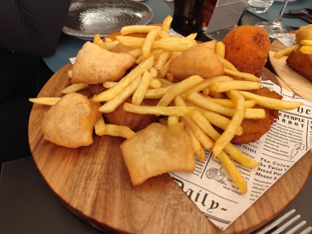 Pancetta coppata, carciofo arrostito, crema di parmigiano, olio evo.