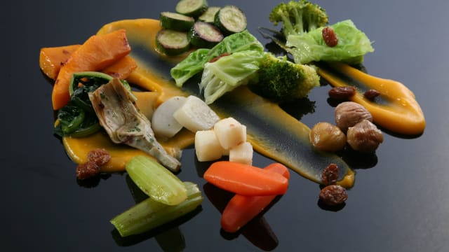 Explore the chef's selection menus with diverse dishes at fixed prices. Some are bookable via TheFork, while others are available onsite.
