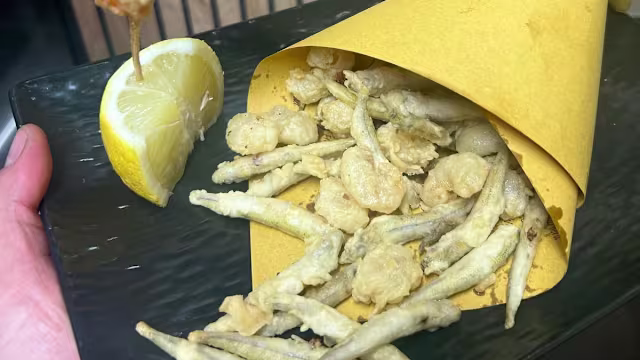 - Cuoppo fritto di gamberetti, scoppularicchi e sciabbacheddu.