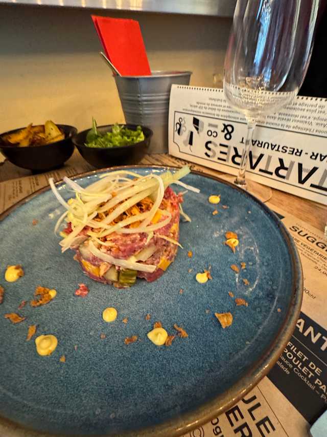 - Bœuf – oignons – cornichons câpres – moutarde – persil – piment