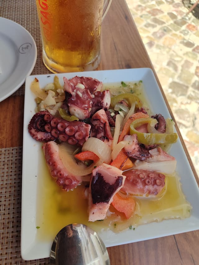 10/10Tucked just around the corner from the overly touristy streets and loud bars lies a small, character-filled restaurant that delivers something truly special. The service was refreshingly genuine. Our waitress was honest, down-to-earth, and effortlessly helpful—no fake smiles or rehearsed lines, just real hospitality. She recommended a few starters, and we’re so glad we took her advice. We began with fried baby squid, pica - pau, and gizzards—each dish full of flavour, beautifully seasoned, and perfectly cooked. The portions were generous. Shame we didn’t even get a chance to snap a photo - sign that we were too busy enjoying ourselves. For mains, the octopus was a standout—tender, smoky, and rich without being heavy. The veal ‘kebab’ was another surprise: juicy, flavour-packed, and plated with care. Every bite felt thoughtful and rooted in tradition, but delivered with flair. The food speaks for itself, the service feels real - a rare find and absolutely worth seeking out.