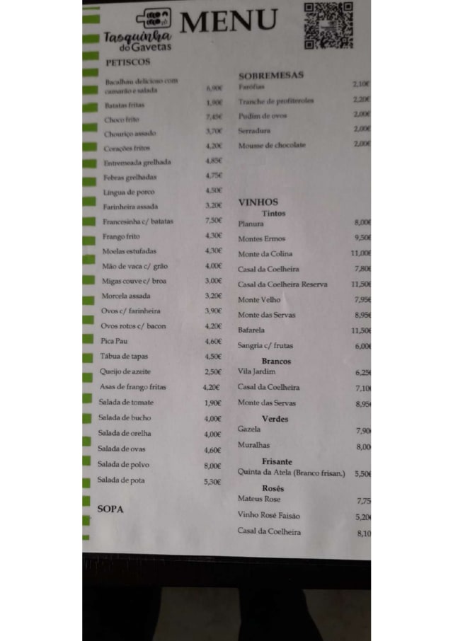 10/10The staff made it great. Our reservation wasn’t even registered because there was a mixup with communication by the owners and their staff. They didn’t have the fork bookings registered. However, the delightful staff gave my family and I a wonderful table and the food was as fantastic. Having never eaten snails, it was either a one-time thing or to try again. Without a doubt, we will be back! Thank you Tasquinha do Gavetas, especially the staff that saved the evening for us.