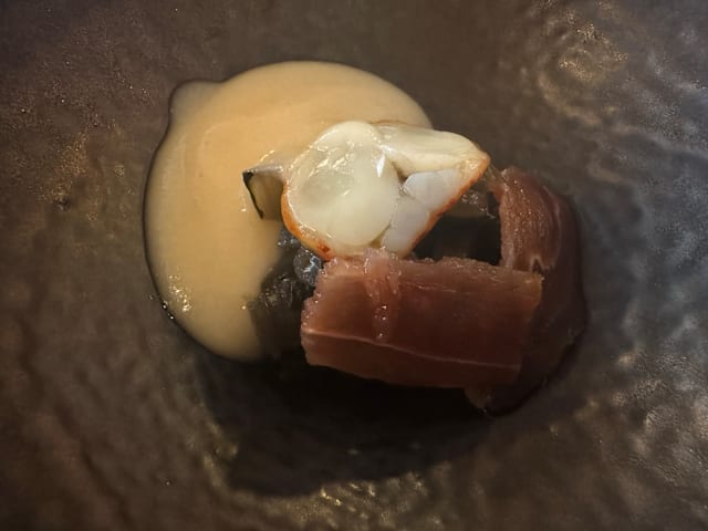 10/10I rarely leave reviews for restaurants, but although I wasn’t in the best mood today, my emotions greatly improved after the meal. The creativity of the dishes, the exquisite plating, and the unexpected variety of flavors were impressive. I was especially struck by the squid in the appetizer — there was no fishy smell at all, and it was paired with a rich, flavorful ink-based sauce that really stood out. For the main course, I chose pigeon, which was also excellent. However, I believe it could be even better by incorporating techniques from Chinese-style crispy roast pigeon to make it juicier. The service was also outstanding — the staff asked for and genuinely listened to my feedback on the dishes. All in all, this is a restaurant well worth visiting. I’m already looking forward to my next meal here!