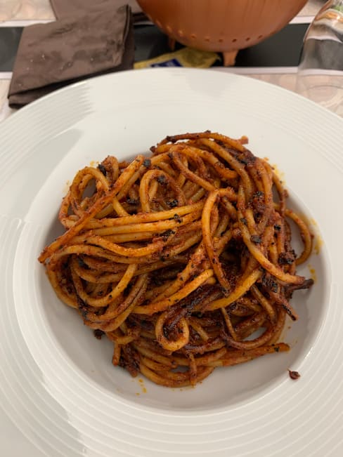 9/10Delicious meal. I ordered the French fries by accident, but they were very tasty. The assassina pasta was wonderful. Highly recommended.