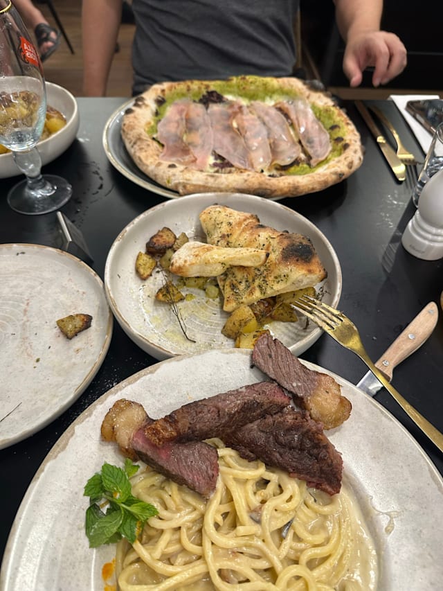 3/10Felt like herding sheep. Specific to the fork reservation, they offer discount to entice you to reserve. When you show up, they don’t check your reservation and act confused when referencing the reservation discount. The service was rushed, the food was mediocre, and the ambience was chaotic. Pasta was undercooked for my wife (not Al dente) and overcooked for me and my son. The ragu almost tasted like canned pasta. The servers would throw dishes down and leave finished plates from the starters sitting there. The table next to us which was an italian couple, refused their pasta 2 times before walking out. Definitely pass on this place.