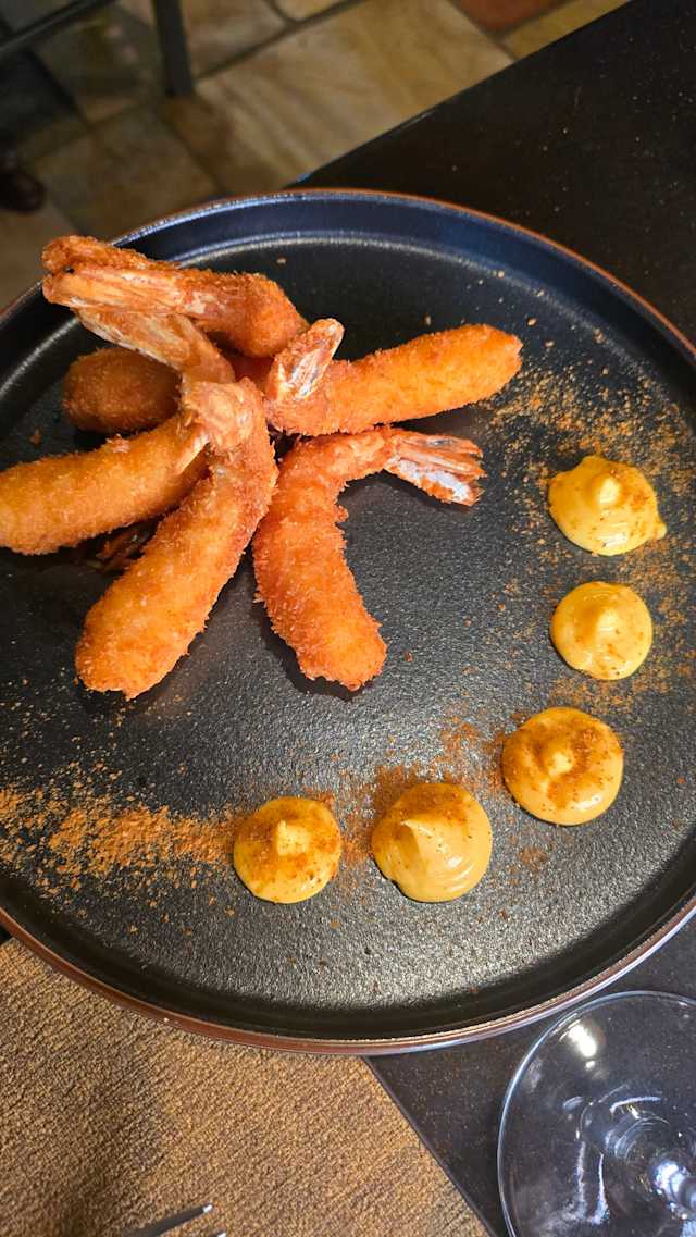 - Gambero argentino in panure di cocco rapè, maionese allo siracha, julienne di verdure scottate all’orientale