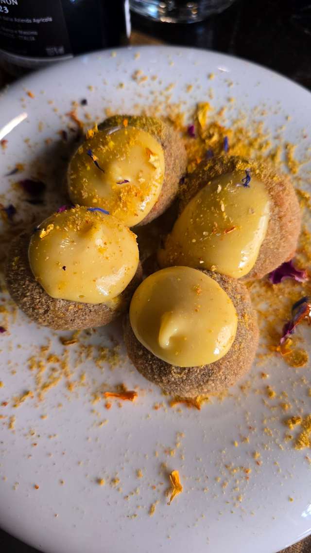 - (Limone e crumble di amaretto, mango e noci sabbiate)
