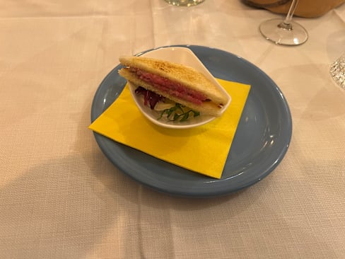 9.5/10The service was friendly and polite. The house breast was excellent. The spaghetti with mussels had no mussels in it but it tasted good. The wine list had a good range of wines. We enjoyed the Nebbiolo Belcolle. Good value.