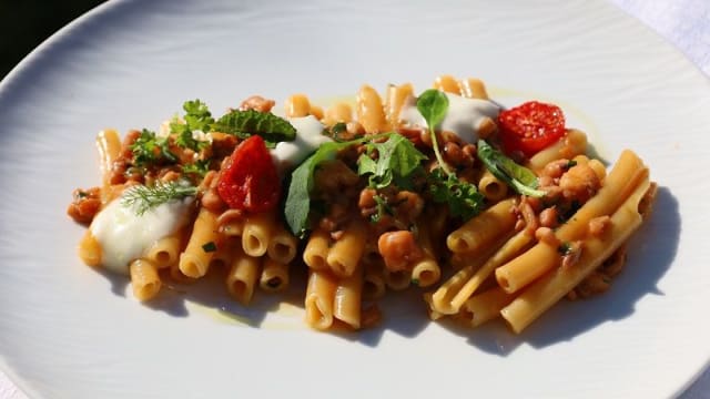 Pacchero con Gallinella di Mare, Pomodorino Confit e Maggiorana