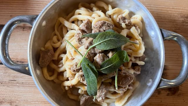 Pici tirati a mano con farine “vitaleta” con ragù bianco di cinta senese