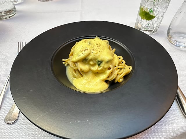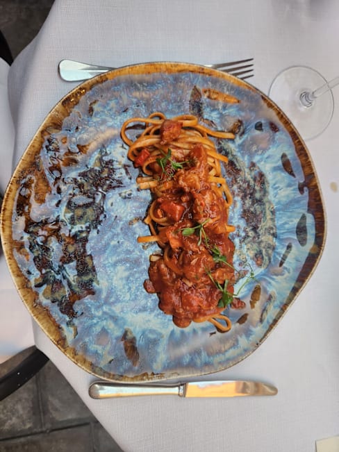 5/10The food was good, perhaps slightly above average. The service was horrendous, starting with the waiter that came to our table and didn’t say a word and just held his pad out, waiting for us to say something. No greeting, no introduction, nothing. Next was we waited 45 minutes for two simple pasta dishes. That might not be so bad in a true fine dining experience, but in that 45 minutes, not a single person approached our table for anything. we were served some hard cold plain breads at the beginning of the meal, and had to ask for some olive oil or balsamic or something. My wife needed to use the restroom and it was absolutely filthy. That never makes you feel good about the food. The topper was the bill. Not only was the pasta extremely overpriced, but they added a surprise 10% service charge to the bill, which I do not recall seeing anywhere on the menu. Regardless, that’s just a bait and switch on menu prices. Just raise your prices so I know that I’m paying €30 for a simple pasta. Never again….