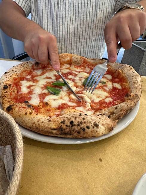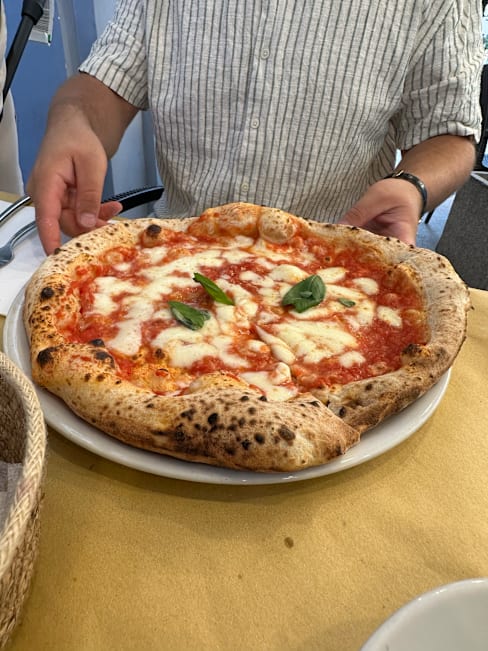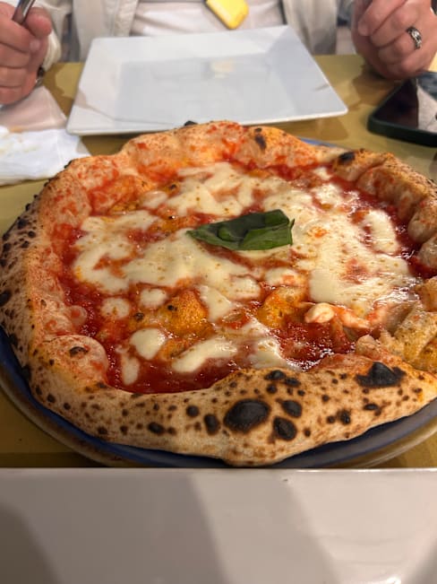 10/10+1The pizzas, especially the "Margherita" were very tasty. The "Caprese" salad was also very good. Fresh products, perfect tomato sauce for pizza, perfect dough and baking. I recommend. The only drawback is the location on a main and noisy street in Naples, but because of the delicious food it's worth it. Thank you! 🙏🏼🍕🤍