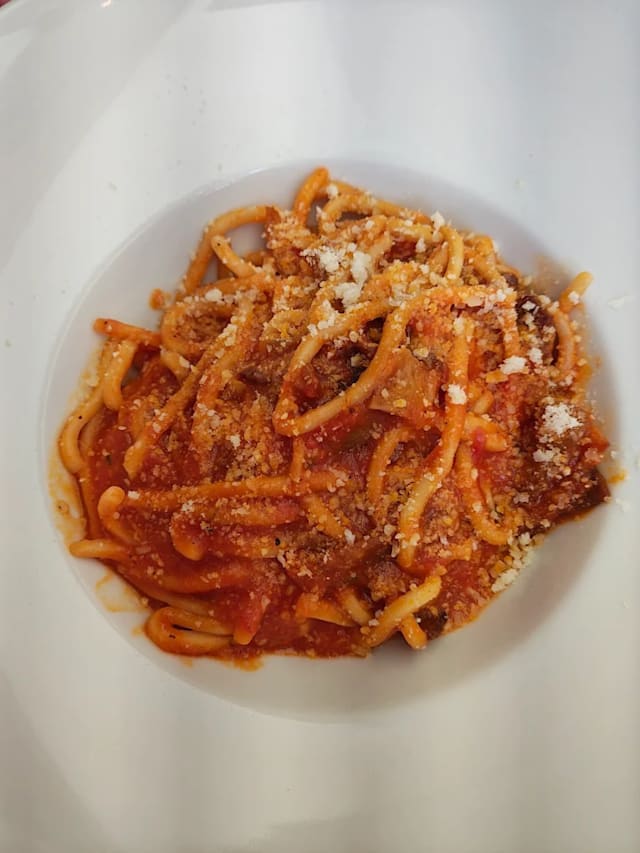 Strangozzi con zucca, gorgonzola e guanciale croccante