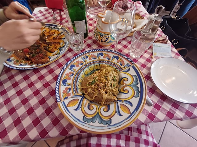 9.5/10Excellent food from Sicily! Gambereti a crema di cecci con menta must try, involtini con pesce spada and caponata also. Pasta Norma great and grilled meat. Real taverna, crowded with lots of locals. We will come back!