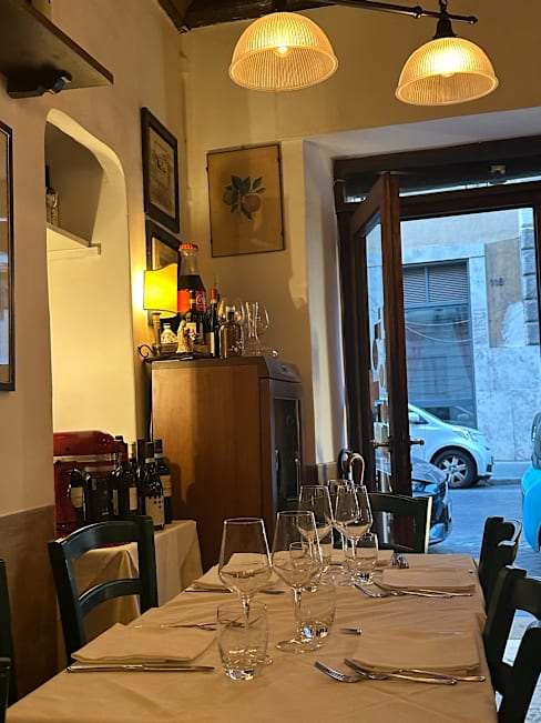 10/10Taverna Ripetta is always a mandatory stop when we are in Roma. A very small, cozy restaurant (24 seats total) and a small staff, you feel like family as soon as you walk in the door. Menu is small but everything is same-day fresh - hence the small menu. Food is expertly prepared and without equal in Roma. The lady who owns the Taverna is outgoing and friendly, and it is refreshing to have an owner who takes a personal stake in every diner and treats everyone individually rather than a one-size-fits-all approach. A/C is used sparingly, so be prepared for a warm dining room during the summer - particularly during heat waves like this summer. Top notch place, strongly recommend, reservations recommended due to the small size.
