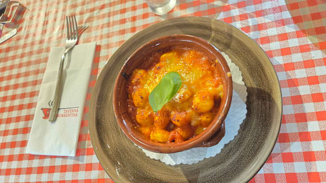 8/10Food was ok. As an Italian Canadian with plenty of Italian restaurants back home, this was on par with average Italian restaurant in Toronto. We have many restaurants that would put this place and many places in Sorrento to shame. The food might be good for those non Italians who still think the Olive Garden is fantastic. The gnocchi were average, and the lemon pasta was tasteless, overpriced for the few minced shrimp that were included. Eggplant parm appetizer was good but portion too small for price. Thank goodness for the 20% Fork discount.