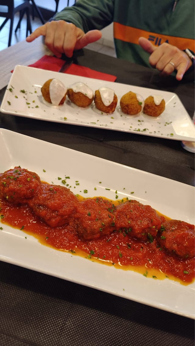 Misto polpettine della casa e ricottina dell’Agro pontino. Compreso di bevanda a scelta tra: drink - soft drink - vini alla mescita - birre alla spina (0,40cl)