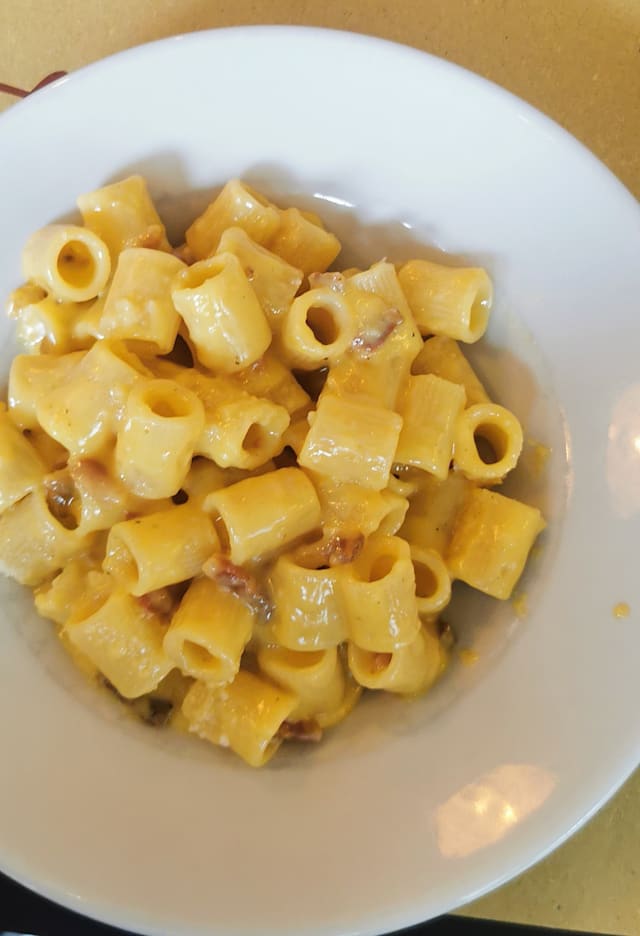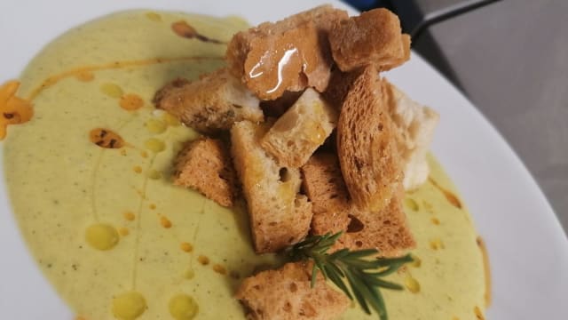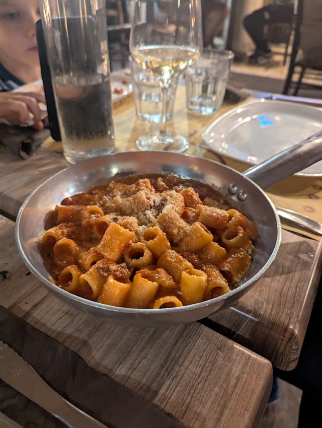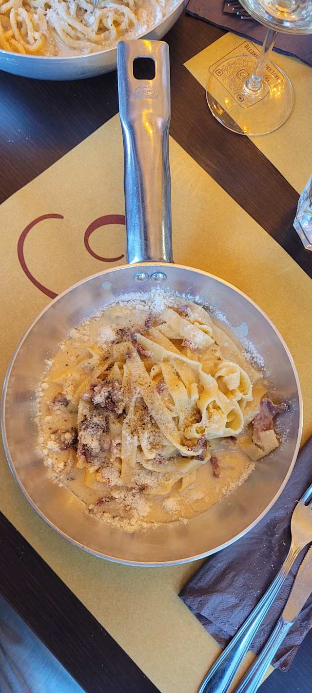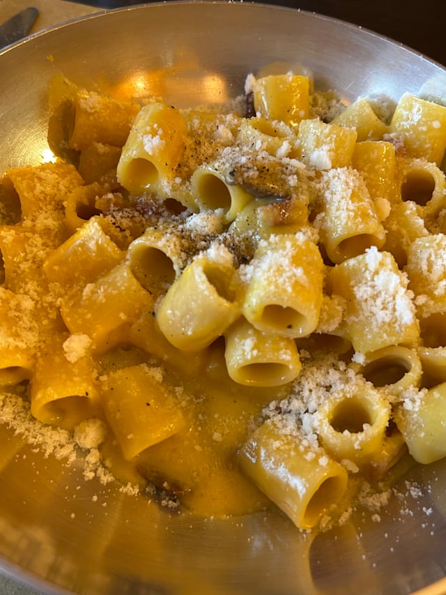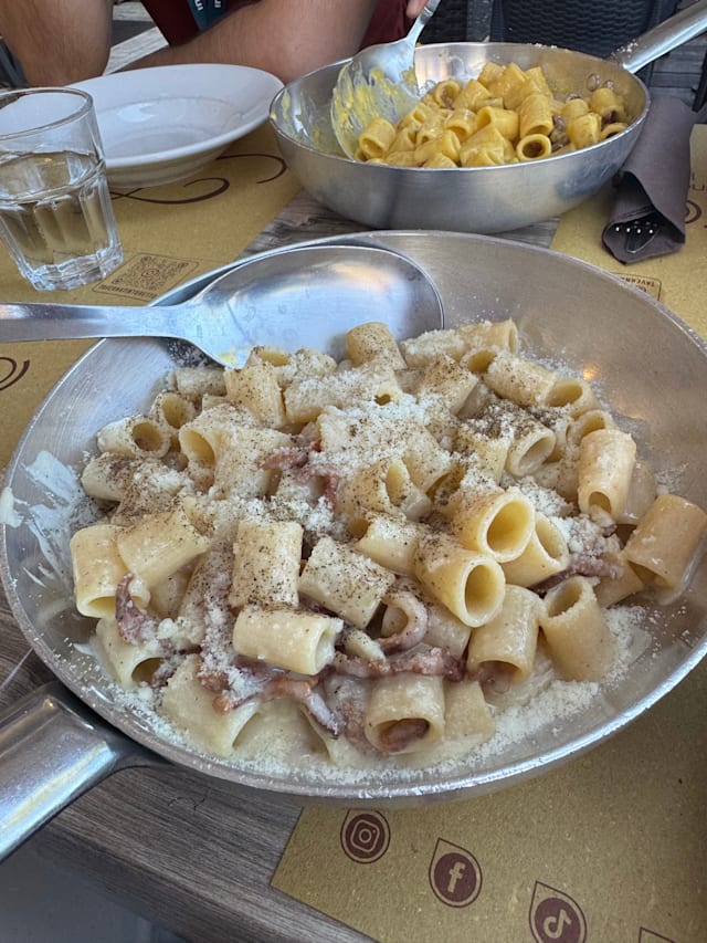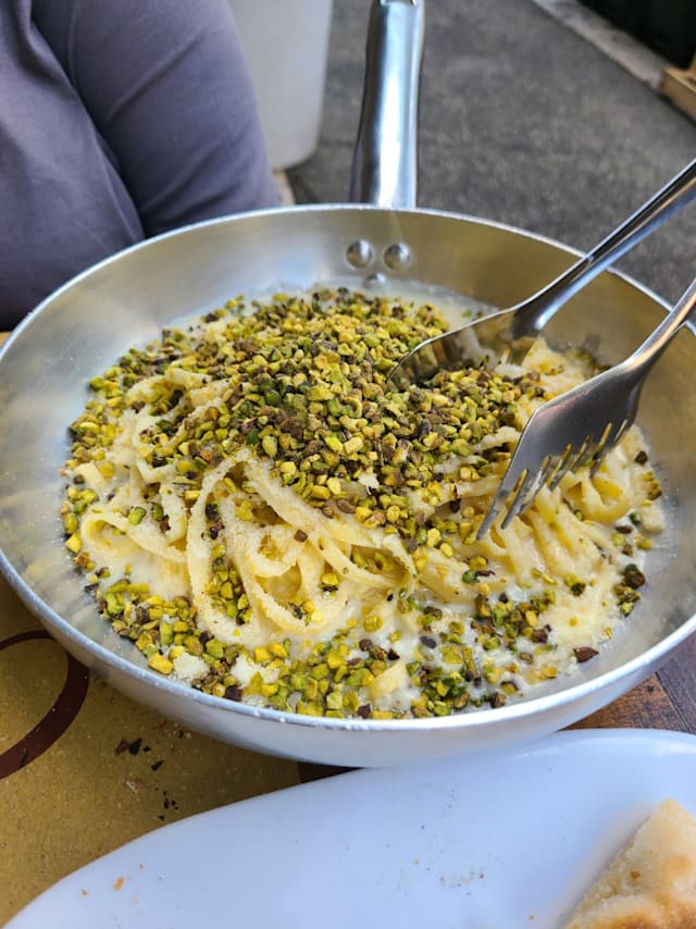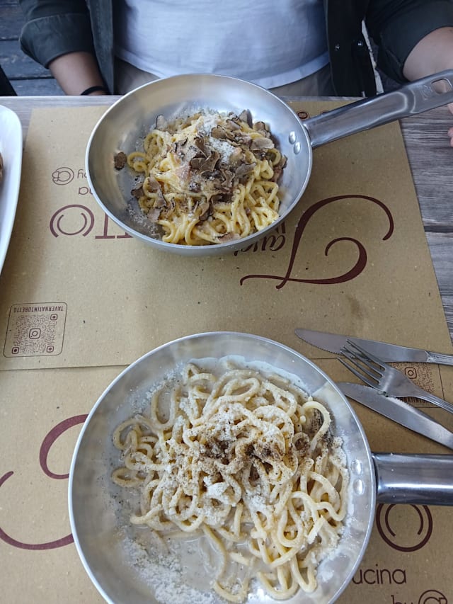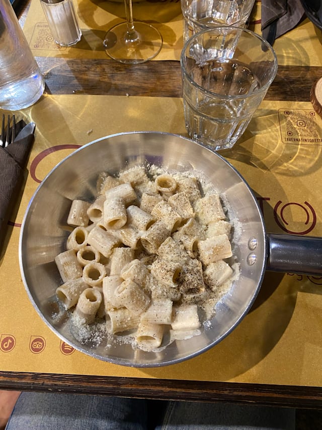 9/10Warm, welcoming place, tables all managed by two young, helpful Ladies. We had focaccia, Roman leading Tonnarelli Cacio e Pepe, desserts and red wine, all deliciously cooked. A must to be mentioned, background music, as attentively selected. Things I shall say anyway? Such in case, I’d change the black metal framed front wall window, with a warm wooden one, tuned with the restaurant furnitures (but this really the only one I can think of).
