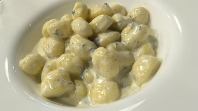 Cipolla ripiena di turgia e fonduta di erborinato