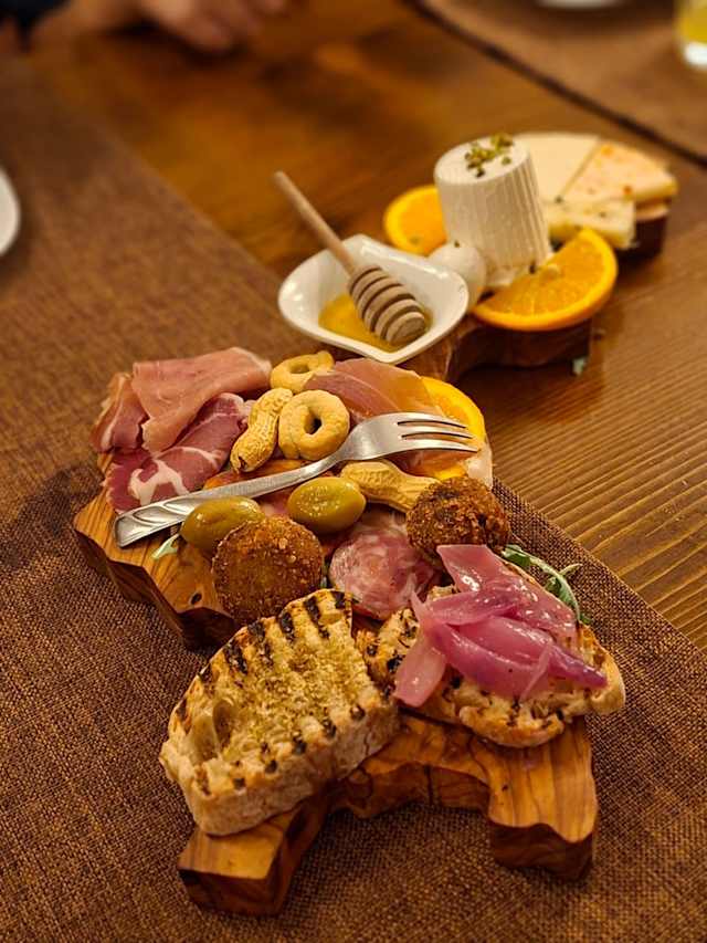 - Mortadella, pesto di pistacchio di bronte, glassa, olio, mozzarella