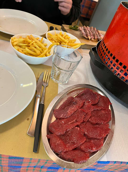 10/10+1Really good restaurant with a super cool concept. After choosing our meat, it is brought fresh to the table where we had a mini BBQ to use for grilling as we like. The meat is accompanied by a bunch of sauces, some bread, french fries and a small salad. The meat is served in various size portions (price based on waight) and there is a good "to the point" variety to choose from. The service was good and our waiter gave us proper recommendations. If you are in Geneva, don't miss out on the experiance