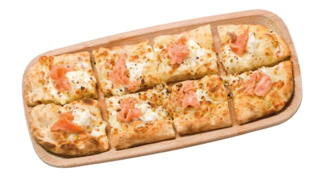 Focaccia, culaccia di prosciutto, salami, olive, mozzarella di bufala, pecorino e asiago.