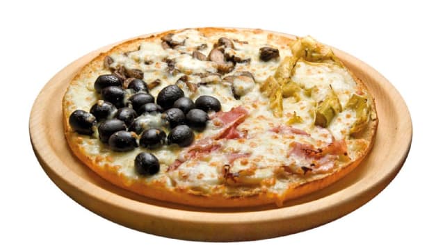 Olive nere, cotto, funghi, carciofi, mozzarella