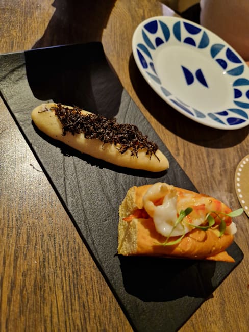 10/10Very relaxed atmosphere, and a very fun experience. This is an elevated experience for tapas, with crunchy shells holding small bites for many dishes. We had the fixed price menu (19 courses) and each was a delight in presentation, texture and flavor. Service was also relaxed but very attentive and accommodating. Not the place for traditional cuisine but a definite must try if you like creative dishes.