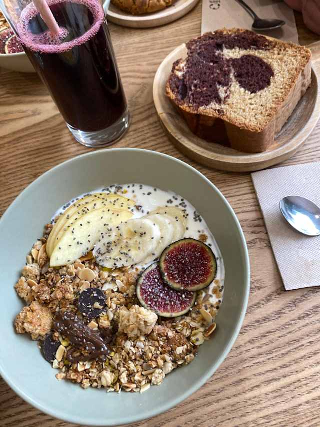 - Crème de coco, mangue, passion, citron vert granola maison et fruits du jour.