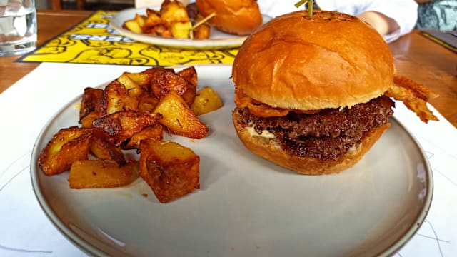 8.5/10The burger was excellent, hot and delicious. Came with fries.