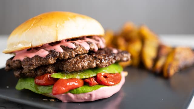 Bun artigianale, smashed burger 200g di puro manzo danese, cipolla bianca smashata in cottura, doppio cheddar, doppio bacon, mayo al chipotle.