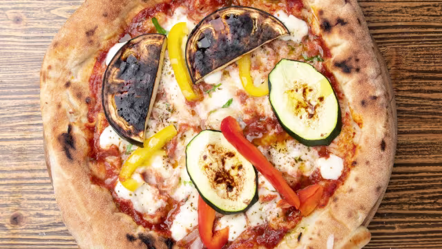 - Pomodoro, fiordilatte, carciofi alla brace, capperi, olive taggiasche e pomodorini confit.