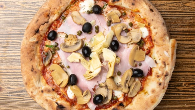 Una pizza ricca e saporita, condita con pomodoro fresco, mozzarella e un goloso mix di ingredienti: prosciutto cotto, funghi freschi, carciofi, olive nere e capperi. Un classico della tradizione italiana che unisce sapori delicati e decisi.