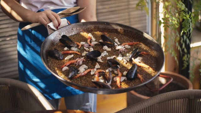 5/10We ate the paella that was a suggestion of the chef at the price of 45 euro per person, which was almost twice the price as the paella on the menu (26 euro per person). Great taste but there was barely seafood in it. The portion was too small, we finished still hungry. When we made a remark, the waiter didn't react. We left the restaurant very disappointed.