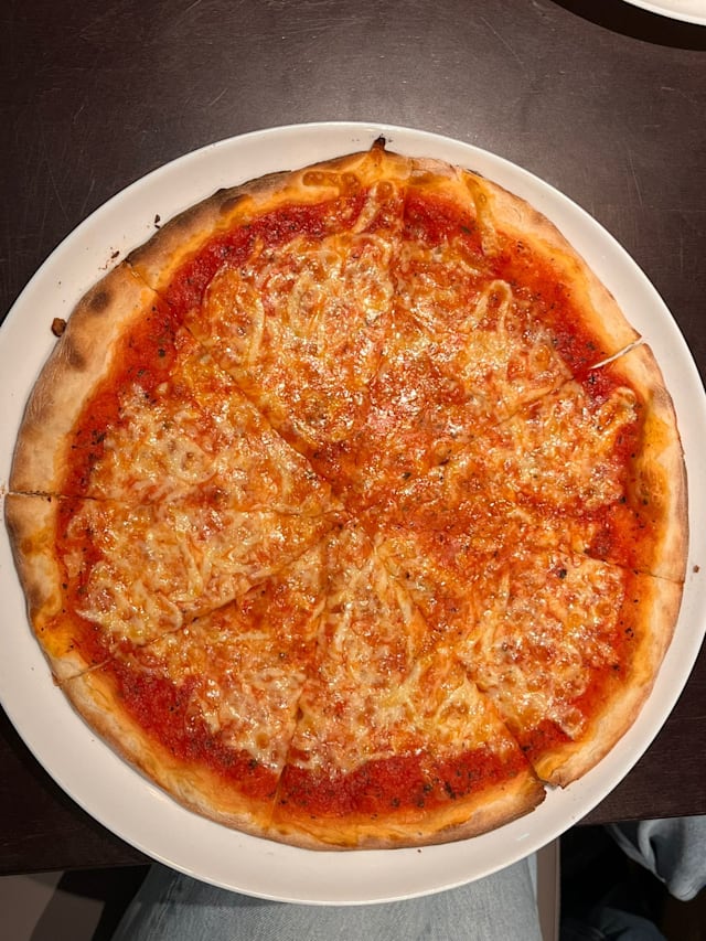 Met tomatensaus, knoflook, picante spaanse pepers, cherry tomaten, ruccola en parmezaanse kaas