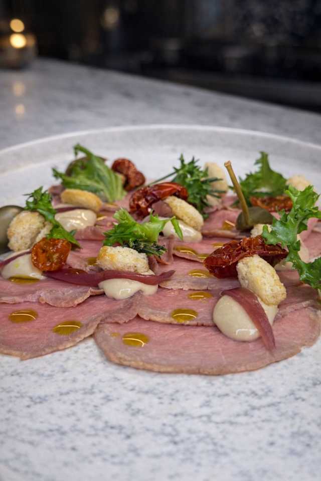 - Vitello tonnato, pane tostato, capperi e cipolla in agrodolce