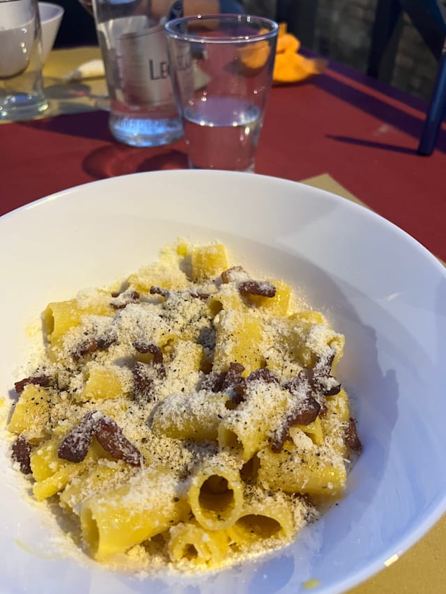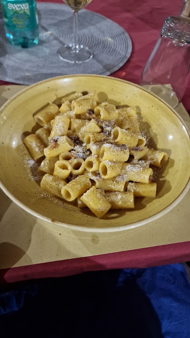- Pasta con guanciale, pepe, pomodoro e pecorino