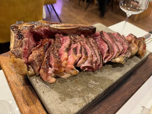 8.5/10Fun experience choosing our steak and having it served table side. Delicious wine and great service. The steak was good, cooked perfectly and nicely marbled-,just a little different flavour and unusual for us to have Holstein steak.