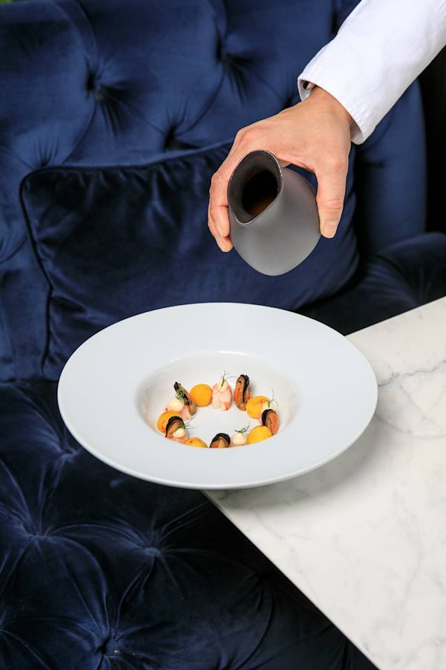 - Bullabesa de la barceloneta con mejillones de roca y ñoquis de azafrán