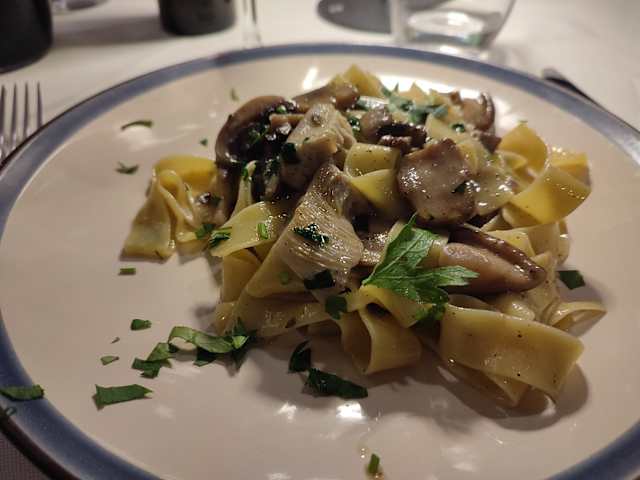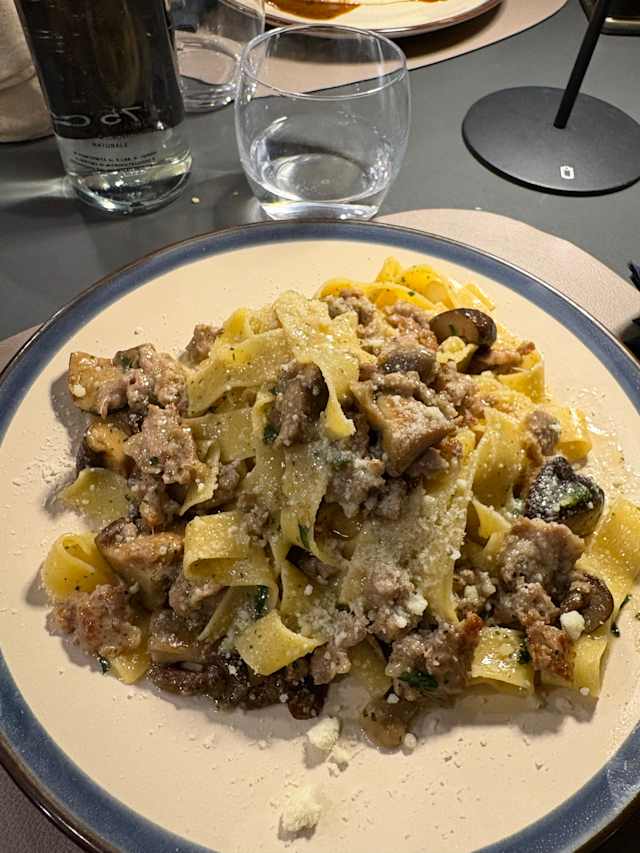 Tagliatelle funghi e salsiccia