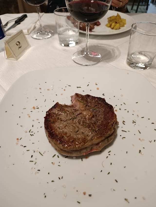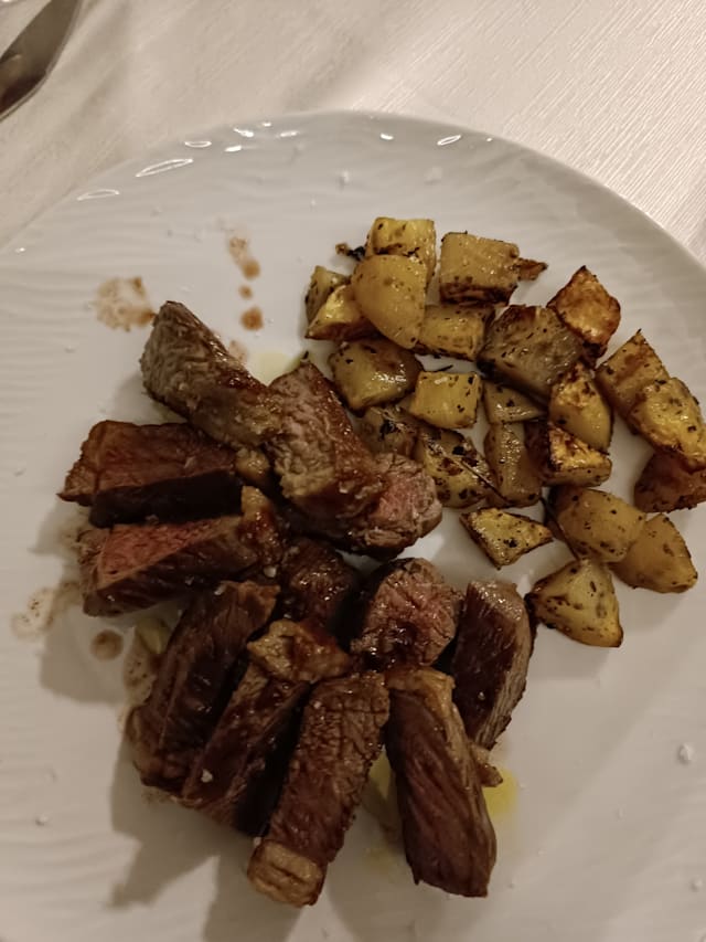 Entrecôte di scottona con rucola, pomodorini, grana a scaglie e glassa di aceto balsamico