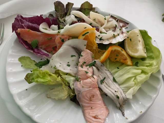 - Ranfa di polpo, julien di seppie, trittico di marinati, frittelle, bruschette, fiore di zucca, frittura di paranza