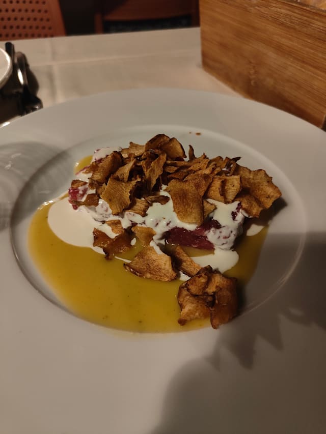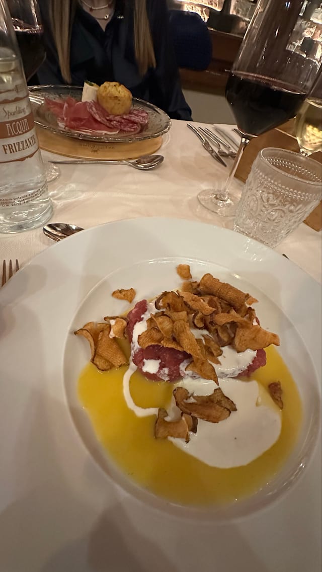 5.5/10No welcome upon arrival- we found our own table without the help of the waiters… the service from then on was quick. The food was of a good quality but the price is high - the portions are small… the cheese soufflé was oddly cold in the middle; the beef fillet was perfectly nice but 28 euros! For this you expect more - the fillet was actually two small slices of fillet with three ‘slices’ of fondant potato and a small pile of spinach… the atmosphere was okay but overall this is a rural restaurant which was trying too hard to be exclusive… in two we spend 90 euros on two antipasti, one primi and one secondi… with water and one glass of wine (for the one who wasn’t driving)… expensive for what you receive… would I go back in a hurry? No… would I consider going back again? Maybe but I think there are better options in this area at that price.