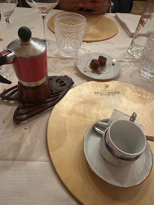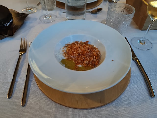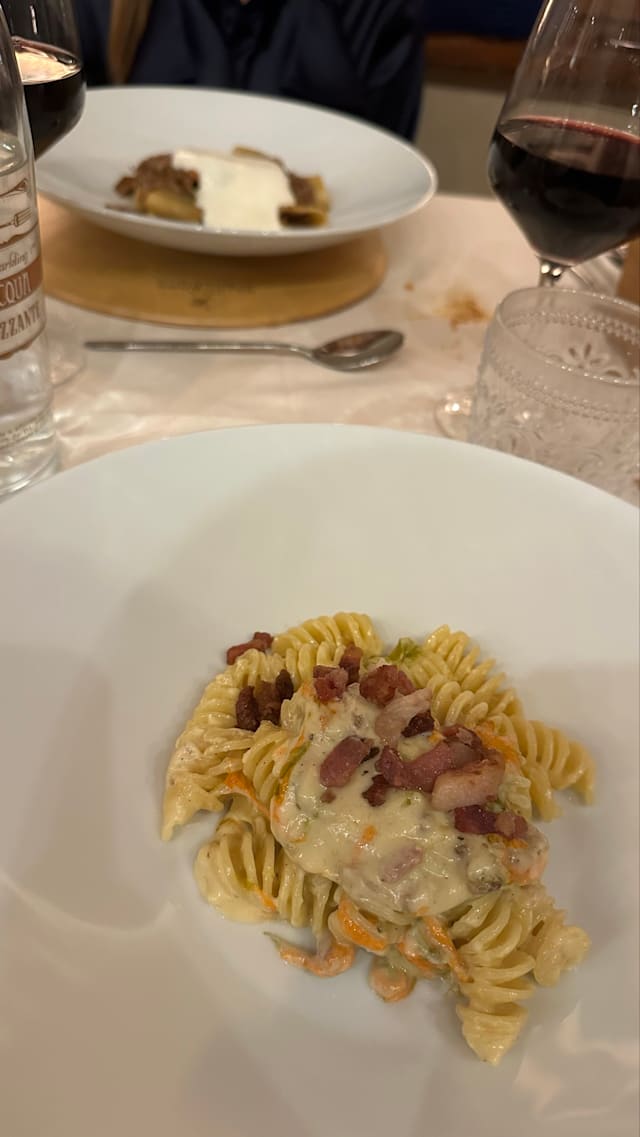 10/10+1We loved this little gem in the middle of the countryside! There were very few people in the terrace so it felt like the whole place was just for us which made the perfect romantic atmosphere for us. Food was superb and the service was perfect. They noticed we were struggling with some Italian words and they brought a menu translated to English. They also offered us some local wine and an aperitivo made of local cheese. Both were absolutely incredible. We loved everything about it.