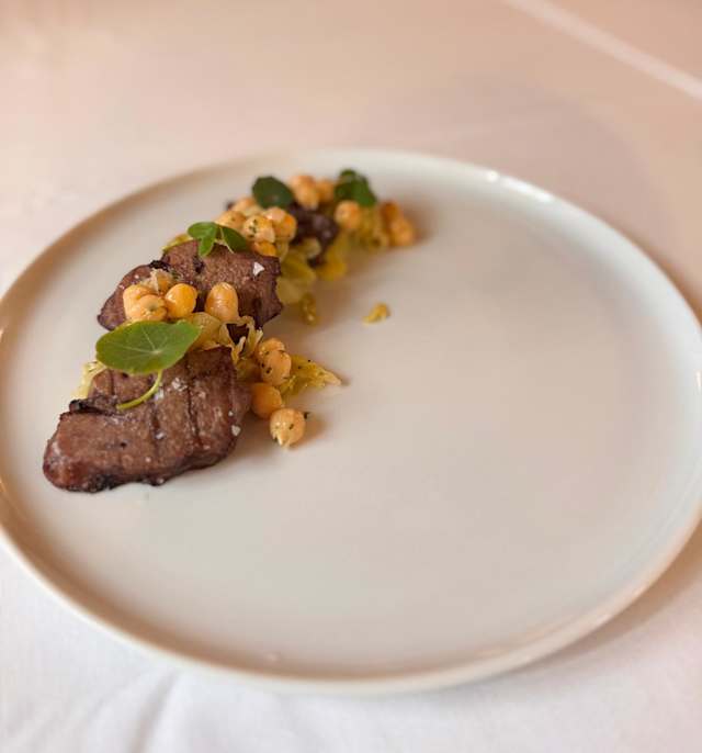 - Lingua di vitello, insalatina di ceci e verza stufata