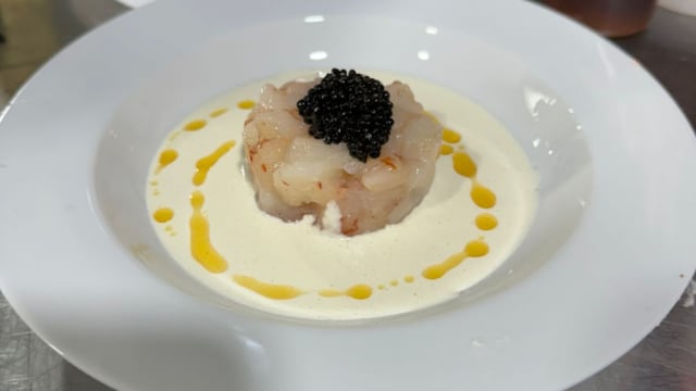Con tartar de gambón y uvas