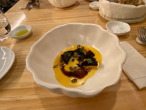 10/10Food was seasonal, unique, and well combined. Staff was attentive, responsive, and good with wine selections.