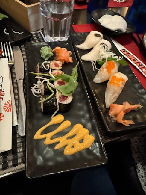 10/10Food was very delicious, we ordered dumplings, spicy salmon sushi roll, tuna sushi roll, rainbow sushi roll, fried duck roll, tempura, all of them were good and very fresh! Staff are kind and provided warm service, you can ask their recommendations for dishes! Recommend it!